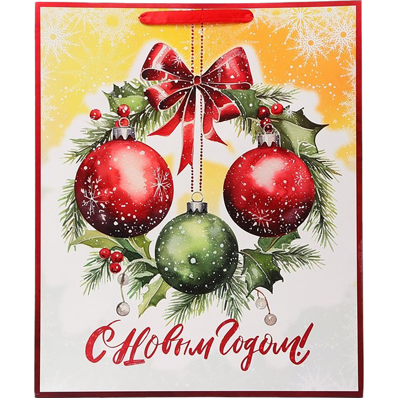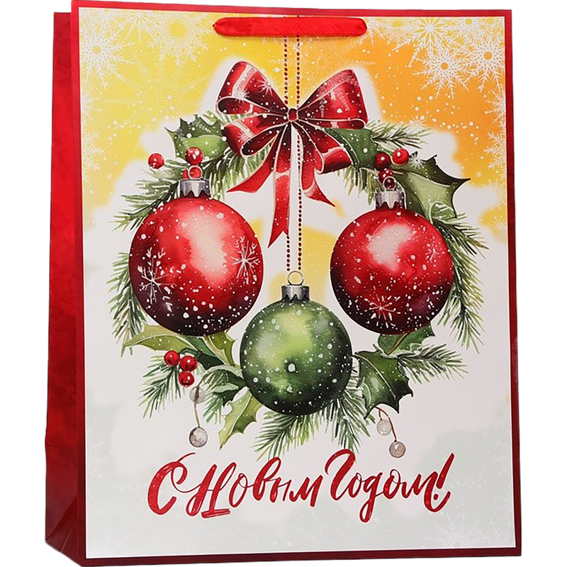 Пакет подарочный ламинированный Upak Land Новогодние шары (49×40×19 см). Идеальный выбор для упаковки новогодних подарков. Этот стильный и функциональный пакет станет прекрасным дополнением к праздничному декору и обеспечит сохранность ваших подарков. Не упустите возможность порадовать своих близких и друзей красивыми и практичными новогодними подарками в стильных ламинированных пакетах.