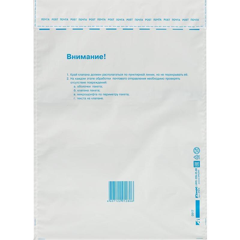 Почтовый пакет формата В4 (размер 250×353 мм) изготовлен из трехслойного непрозрачного полиэтилена толщиной 70 мкм. Предназначен для упаковки всех видов почтовых отправлений — писем, бандеролей, мелких посылок (простых, заказных, с объявленной ценностью). Имеет почтовый подсказ «Куда-Кому», снабжен отрывной клейкой лентой. Поверхности определенных зон пакета обеспечивают качество наносимых шариковой ручкой надписей, оттисков штемпелей и не допускают их истирания при обработке и транспортировке.Многослойный полиэтилен высокой прочности защищает вложение от влаги и механических повреждений, непрозрачность исключает возможность определить содержимое. Любая попытка несанкционированного вскрытия выявляется благодаря специальному прочному шву с микротекстом и специальным линиям просечек с защитным текстом на клапане.Почтовые пакеты можно приобрести как поштучно, так и упаковкой из 500 штук (стоимость указана за штуку).Страна производства — Финляндия. Срок хранения неограничен.