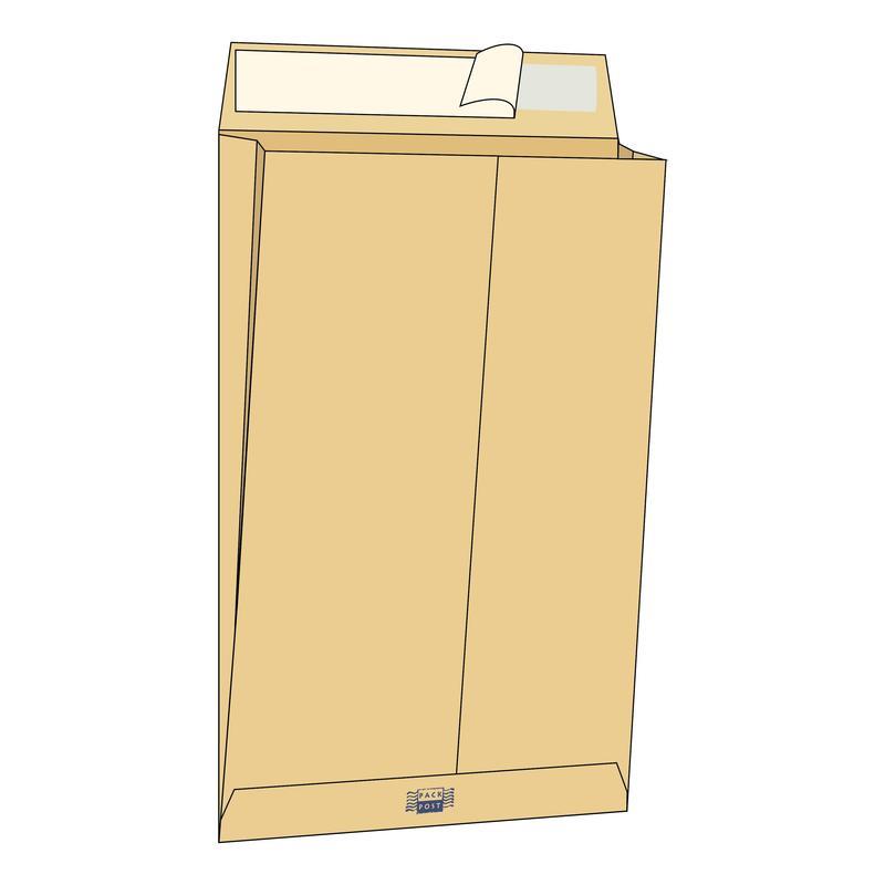Пакет почтовый Largepack формата С4 (229×324 мм) изготовлен из прочной крафт-бумаги плотностью 100 г/кв.м. Предназначен для отправки почтой объемных вложений, многостраничных документов, архивных папок, журналов, каталогов. Боковое расширение — 40 мм. Оснащен клеевой полосой с отрывной силиконовой лентой (стрип). В упаковке 200 почтовых пакетов.