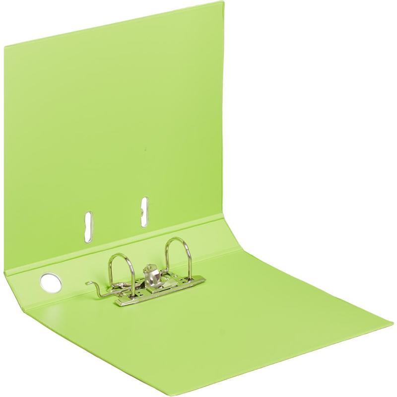 Папки регистраторы изготовлены из прочного картона тощиной 1,9 мм покрытого с двух сторон пленкой ПВХ. Формат А4, ориентирован вертикально. Вмещают до 350 листов стандартной плотности. Оснащены механизмом, производства Чехии. На корешке шириной 50 мм имеется карман со сменной этикеткой и круглое кольцо для удобства захвата. По нижнему краю папки окантованы дополнительным слоем пленки ПВХ по технологии Strong Line. Овальные кольца на верхней крышке удерживают папку закрытой даже при большом количестве документов. Цветовая гамма имеет 12 цветов. Допустима влажная обработка.