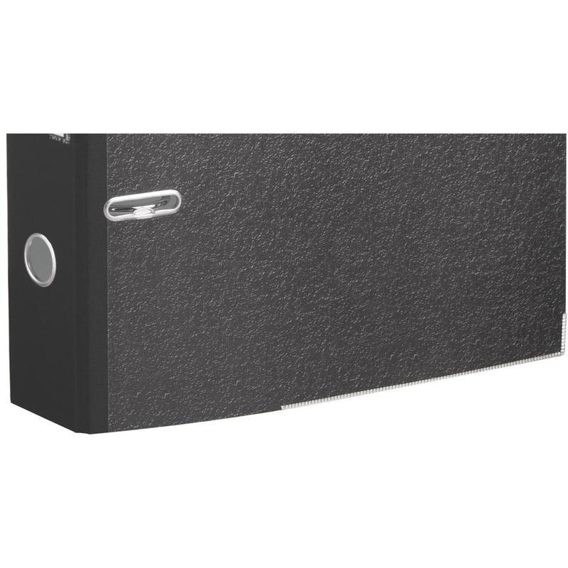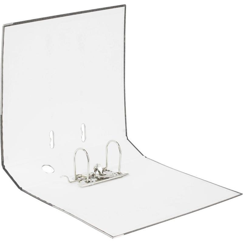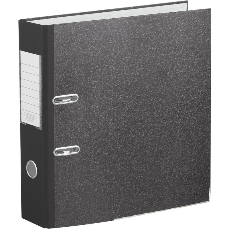 Папка-регистратор с арочным механизмом изготовлена из плотного картона, с внешней стороны оклеена износостойкой бумагой под мрамор, корешок — бумвинил. Формат А4. Нижние края защищены металлическим кантом. Прорези на внешней крышке удерживают папку закрытой даже при большом объеме документов. На корешке есть кольцо для удобного захвата. Арочный механизм произведен в Чехии. Папка-регистратор вмещает до 480 листов бумаги стандартной плотности.