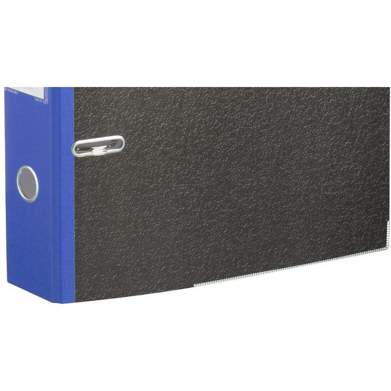 Папка-регистратор с арочным механизмом изготовлена из плотного картона, с внешней стороны оклеена износостойкой бумагой под мрамор, корешок — бумвинил. Формат А4. Нижние края защищены металлическим кантом. Прорези на внешней крышке удерживают папку закрытой даже при большом объеме документов. На корешке есть кольцо для удобного захвата. Арочный механизм произведен в Чехии. Папка-регистратор вмещает до 480 листов бумаги стандартной плотности.