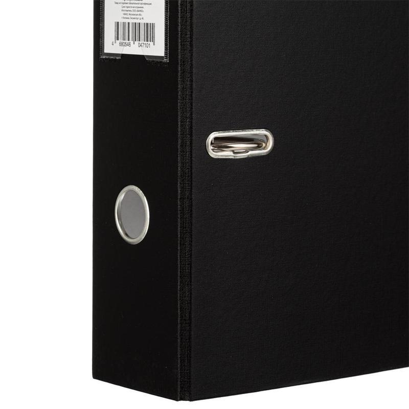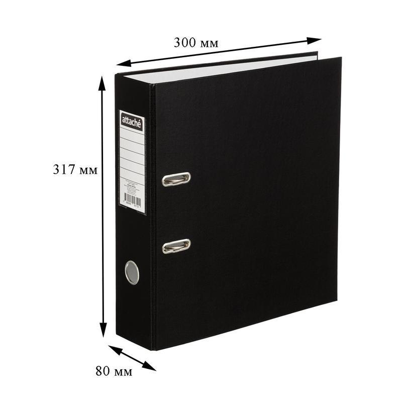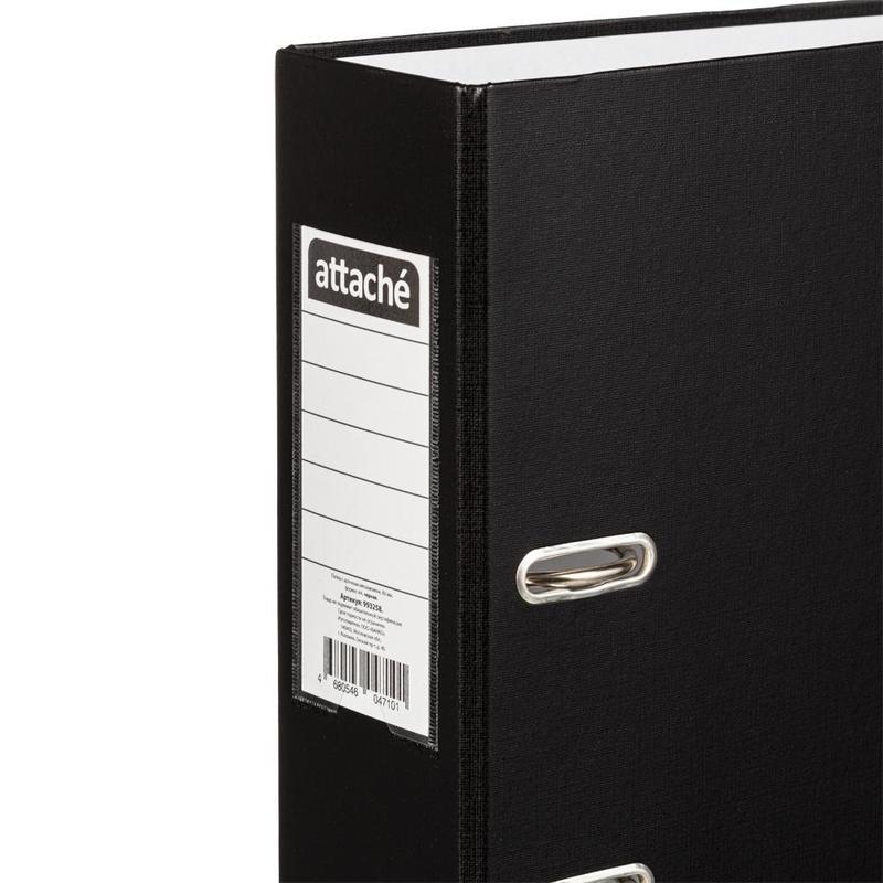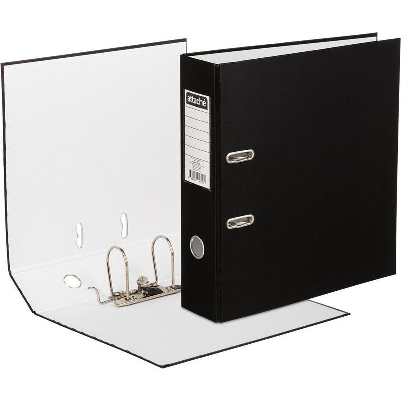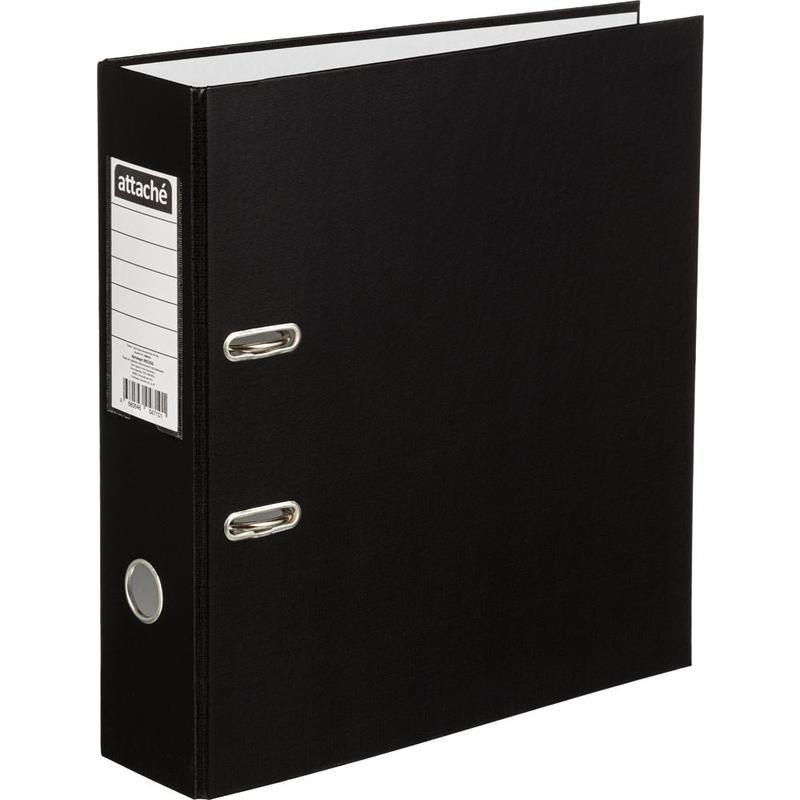 Папка-регистратор с арочным механизмом Attache изготовлена из плотного картона, с внешней стороны обтянута бумвинилом черного цвета. На корешке шириной 80 мм есть карман с этикеткой и кольцо для удобного захвата. Формат А4. Арочный механизм произведен в Чехии.Папка-регистратор вмещает до 600 листов стандартной плотности. Папка не имеет защиты по нижнему краю.