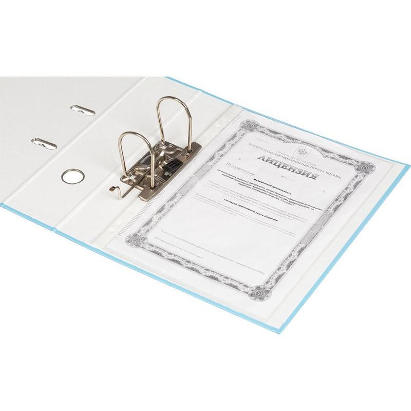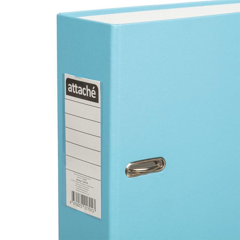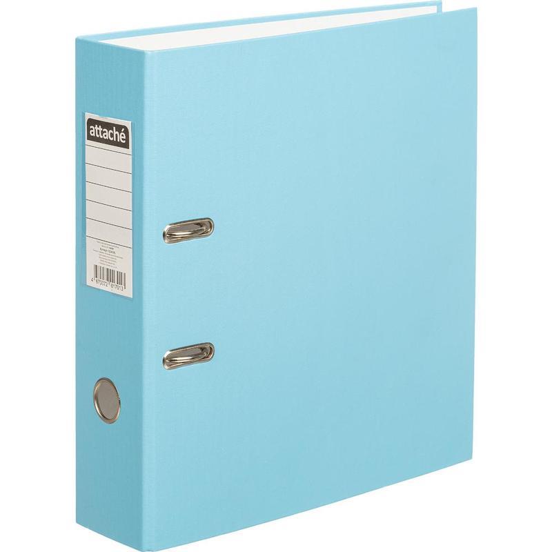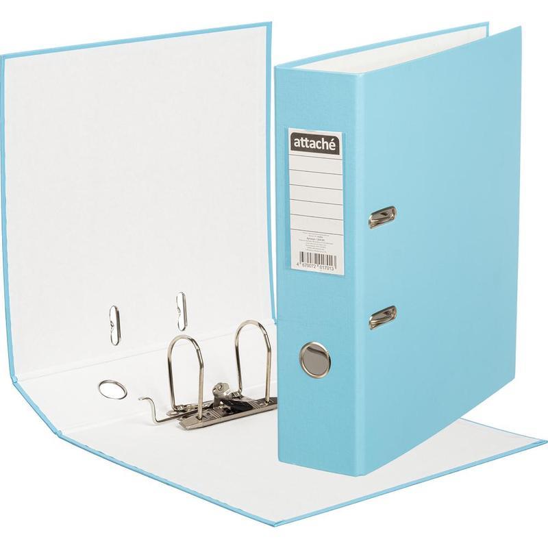 Папка-регистратор с арочным механизмом Attache изготовлен из плотного картона, с внешней стороны обтянута бумвинилом голубого цвета. Корешок-бумажный. На корешке шириной 80 мм есть карман с этикеткой и кольцо для удобного захвата. Папка-регистратор вмещает до 600 листов стандартной плотности. Папка не имеет защиты по нижнему краю.
