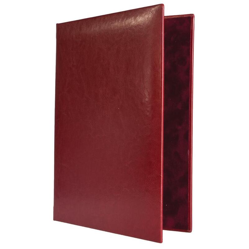 Адресная папка формата А4 выполнена из рециклированной кожи бордового цвета (изготавливается из переработанной натуральной кожи). Внутренние вклейки бархатные. Подходит для поздравлений и подачи документов на подпись. Ширина корешка — около 1.9 см. На папку можно нанести логотип.
