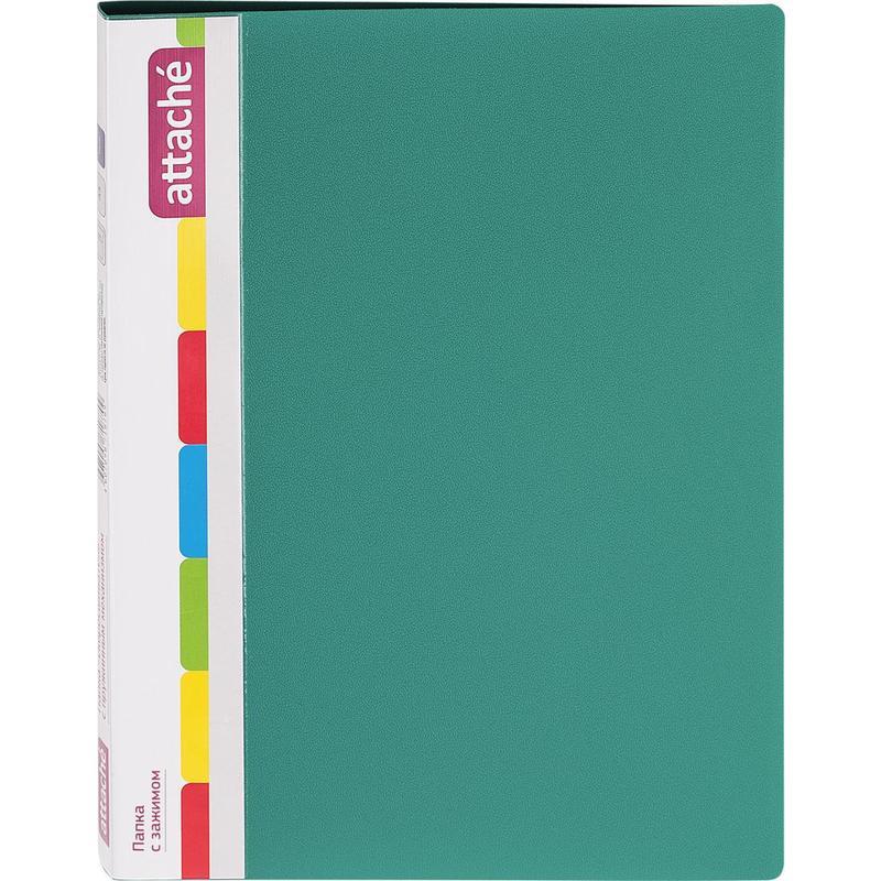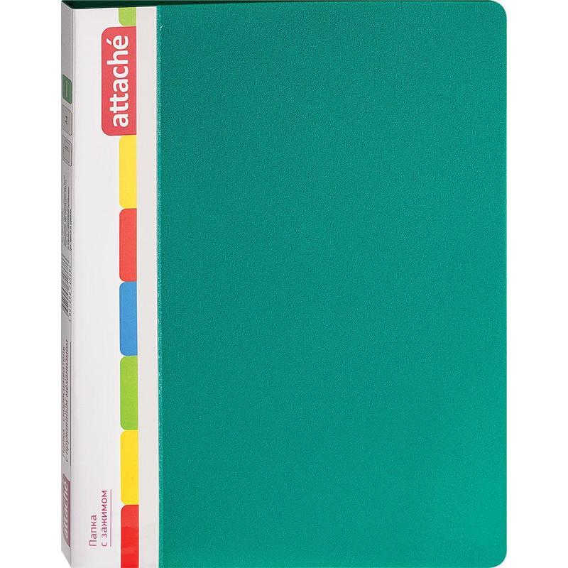 Папка Attache формата А4 изготовлена из пластика зеленого цвета, материала — 0,7 мм. Оснащена металлическим механизмом с прижимом, который позволяет подшивать документы без предварительной перфорации. Ширина корешка — 17 мм. На внутренней стороне обложки есть прозрачный карман для документов, компакт-дисков, визиток. Папка вмещает до 150 листов стандартной плотности.