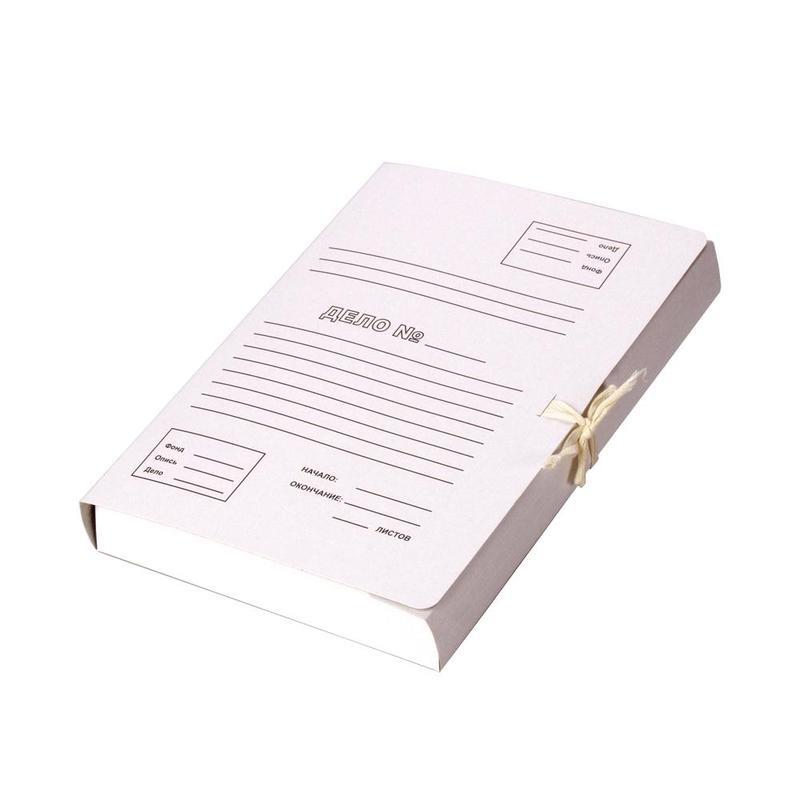 Папка с завязками "Дело № с расширением до 40 мм, формата А4 изготовлена из белого немелованного картона (плотность 300 г/кв.м). Вместимость — до 400 листов стандартной плотности. Папка с завязками поставляется по 20 штук в упаковке.