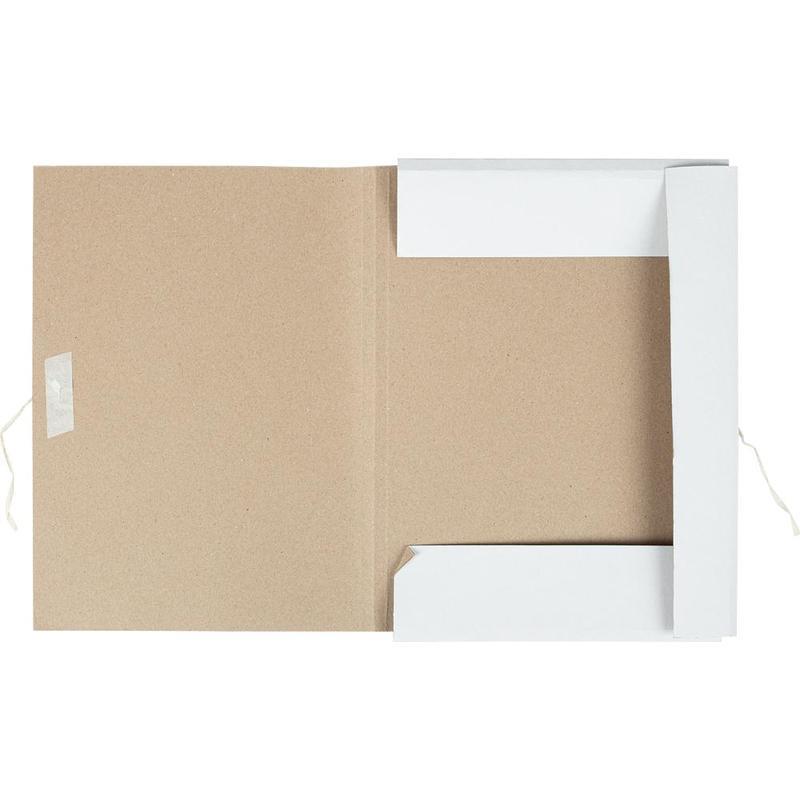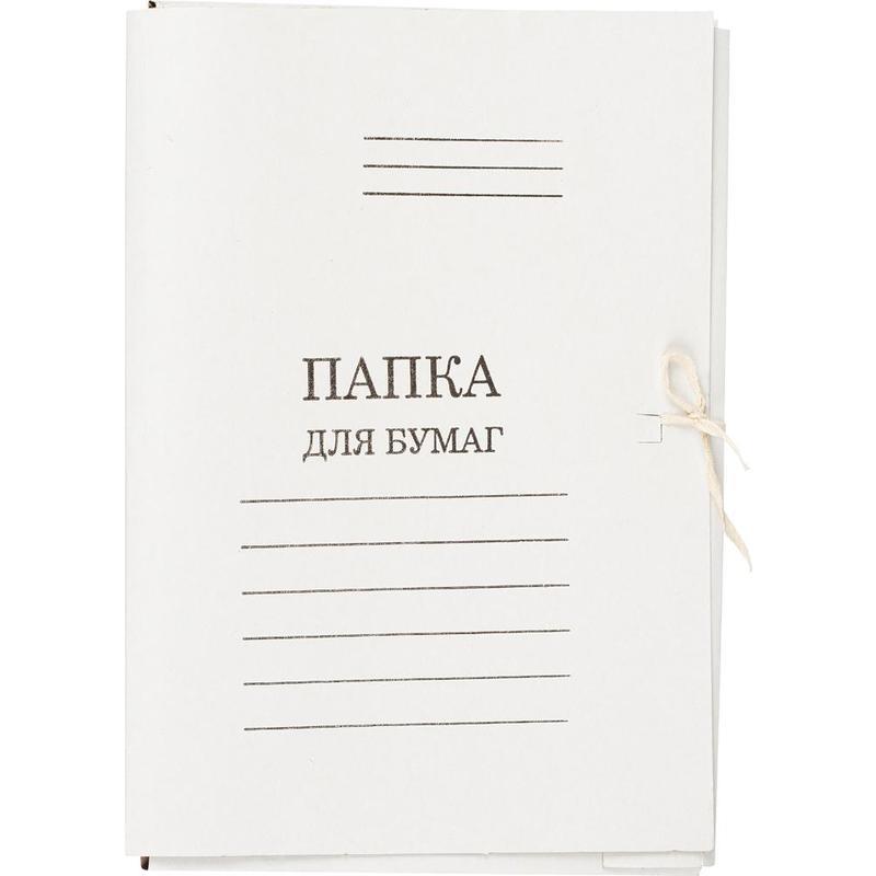 Папка для бумаг формата А4 с завязками изготовлена из немелованного картона белого цвета, на лицевой стороне есть поля для подписывания. Ширина корешка: 20. Три внутренних клапана, благодаря которым документы не выпадают. Папка картонная на завязках вмещает до 200 листов стандартной плотности. В упаковке 20 штук.