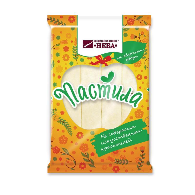 Пастила «Нева» ванильная. Масса нетто: 200 г Состав: сахар-песок , пюре яблочное, патока, вода, белок яичный, желеобразователь — агар, кислота молочная, аромати заторы идентичные натуральным: «Ванильный», красители Е129, Е102, Е133. Не содержит ГМО. Противопоказано при индивидуальной непереносимости к яичному белку. Пищевая ценность на 100 г продукта: белки: 0.44 г углеводы: 83.3 г Энергетическая ценность на 100 г продукта: 301 ккал Срок годности: 3 мес. Условия хранения: хранить в помещениях не зараженных вредителями хлебных запасов, при температуре 18±5 градусов Цельсия и относительной влажности воздуха не более 75%. Страна производства: Россия