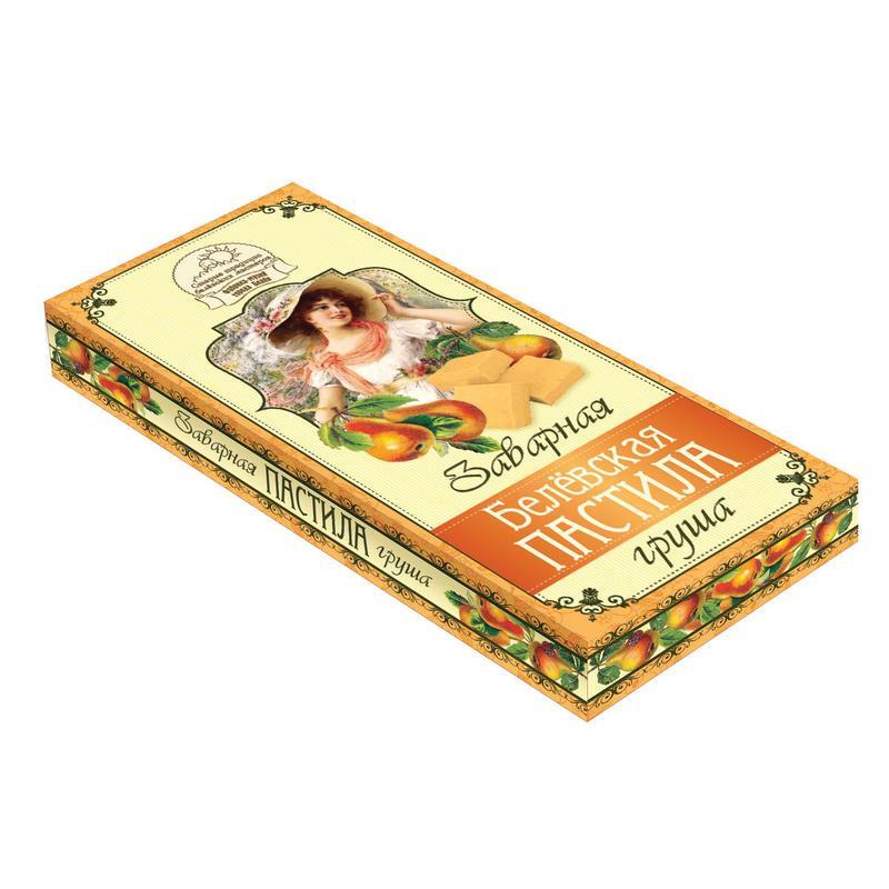 Натуральная пастила на основе яблочного пюре и яблочного пектина с добавлением сока груши. Масса нетто: 250 г Состав: патока карамельная, пюре яблочная, пектин яблочный, белок яичный, йогуртовая пудра, молочная кислота, натуральный сок груши. Без сахара, красителей и консервантов. Пищевая ценность на 100 г продукта: белки: 0.5 г углеводы: 74.4 г Энергетическая ценность на 100 г продукта: 324 ккал Срок хранения: 3 мес. Условия хранения: хранить при температуре от 15 до 21 градуса Цельсия и относительной влажности воздуха не более 75%. Страна производства: Россия