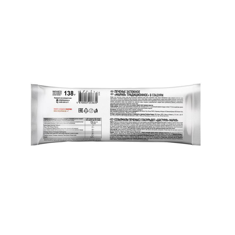 Глазурь, тающая во рту и хрустящее печенье 'Мария' — выразительный дуэт для любого чаепития. Благодаря новой рецептуре и натуральным злакам оно становится отличным выбором для всех, кто ценит сбалансированный вкус и аромат домашней выпечки.