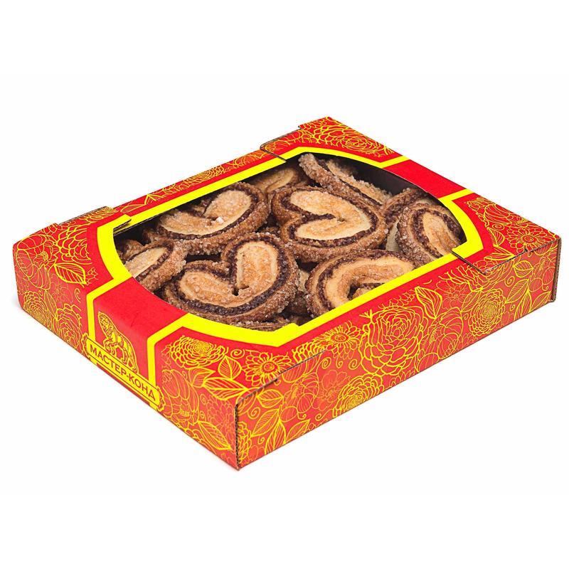 Состав: мука пшеничная в/с, сахар, маргарин для слоеного теста (дезодорированные растительные масла, вода, эмульгаторы (эфиры глицерина и лимонной и жирных кислот, эфиры полиглицерина и жирных кислот), соль, ароматизатор «Масло», регулятор кислотности лимонная кислота, консерванты (сорбиновая кислота, бензоат натрия), краситель (каротины)), маргарин для выпечки (дезодорированные растительные масла, вода, эмульгаторы (моно- и диглицериды жирных кислот, полиоксиэтилен, лецитин (соевый)), соль, консерванты (сорбиновая кислота, бензоат натрия), ароматизатор «Масло», краситель (каротины), регулятор кислотности лимонная кислота), соль, какао-порошок, регулятор кислотности лимонная кислота, ароматизатор «Карамель».