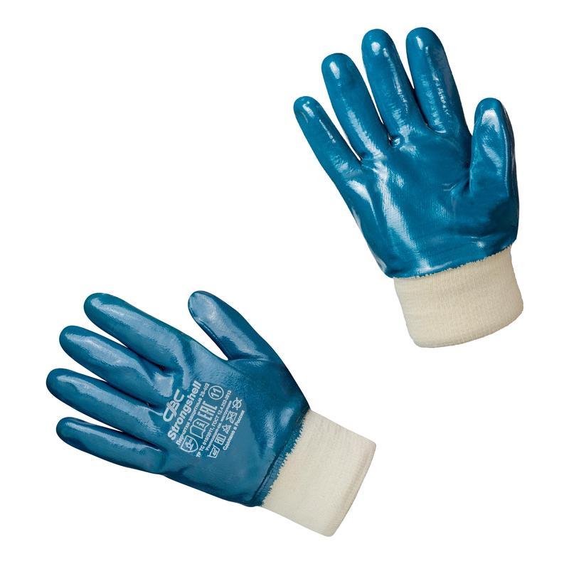 Перчатки рабочие Strongshell хб с полным нитриловым покрытием. Большие, прочные перчатки для самых грубых и тяжелых работ. Благодаря уникальному составу нитрила прекрасно защищают от нефтепродуктов. Отлично проявляют себя при работах связанных с добычей и переработкой нефти. Высокая зашита от порезов и проколов. Не содержит силикона. Вязаная манжета способствует лучшей фиксации на руке. Размер: 11, XXL.