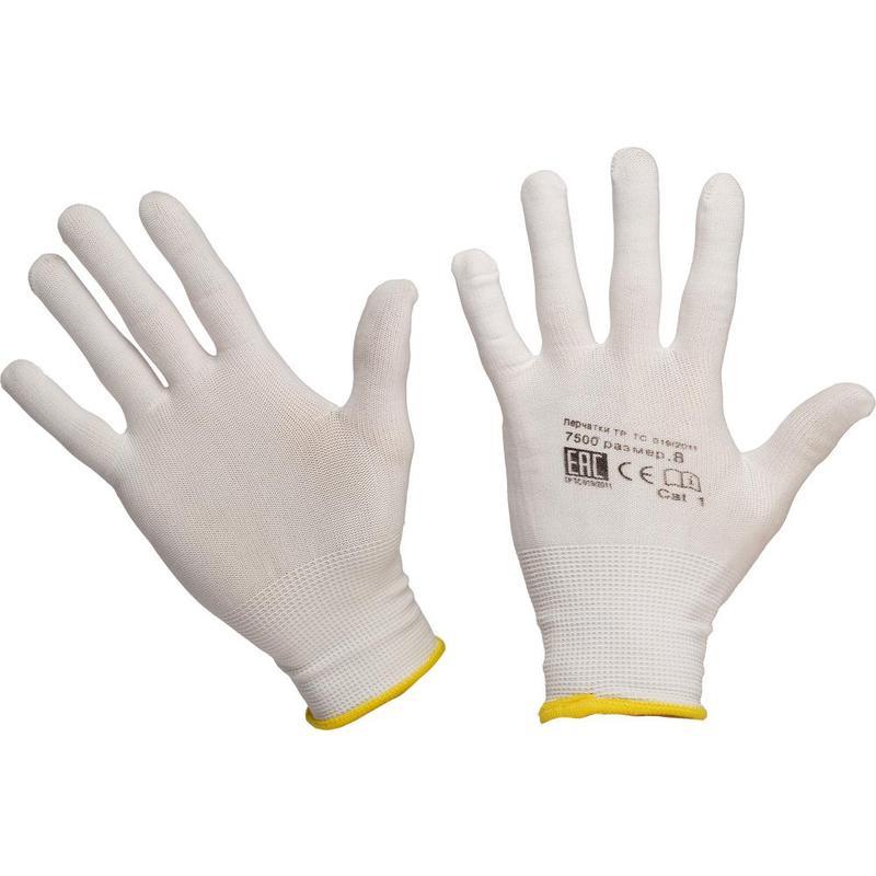 Рабочие перчатки нейлоновые вязанные выполнены в белом цвете. Класс вязки: 13. Изделие хорошо облегает руки, благодаря чему обеспечивается гибкость и чувствительность пальцев при выполнении тонких и точных работ, не оставляют волокна на рабочих поверхностях, антистатичны, так же используются для «чистых» производств, когда возникает потребность защитить изделие от загрязнений. Перчатки обеспечивает хороший захват на гладких поверхностях, позволяя работать с особо мелкими деталями. Положите их в автомобиль и, в случае необходимости, вы защитите свои руки от травм и грязи, с сохранением возможности проведения точных работ. Размер перчаток: 8.
