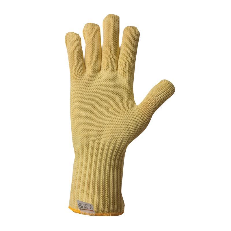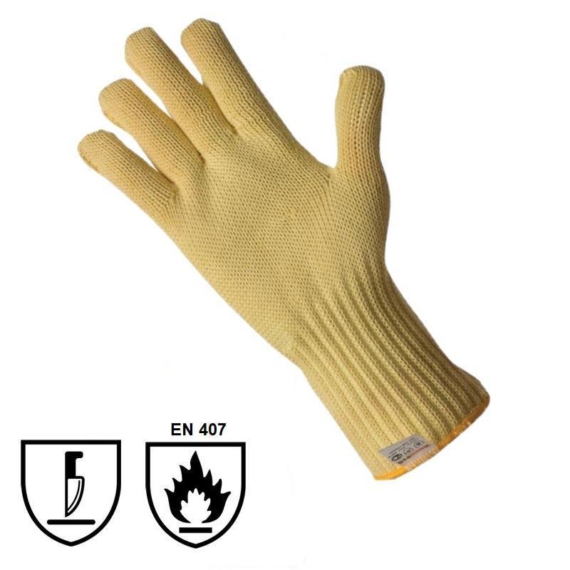 Перчатки с внутренней х/б подкладкой. Идеально защищают от ожогов, подходят для работы с раскалёнными и острыми предметами. Максимально устойчивы к порезам. Не выделяют при нагреве вредных для человека веществ. Перчатки предназначены для работы в металлургической и стекольной промышленностях, на производстве шин и при сварочных работах. Материал: Высокоэффективное теплостойкое волокно Kevlar, в 5 раз прочнее стали на разрыв; сопротивление на разрез в 8 раз выше, чем у кожи. Размер: универсальный. Перчатки гигиеничны, можно неоднократно обрабатывать моющими средствами. Комфортная работа по показателю термостойкость (контакт) до 300 С-5 секунд, соответствует ТР ТС 019/2011. Устойчивость к порезам: 4. Стойкость к прожиганию — 60 секунд.