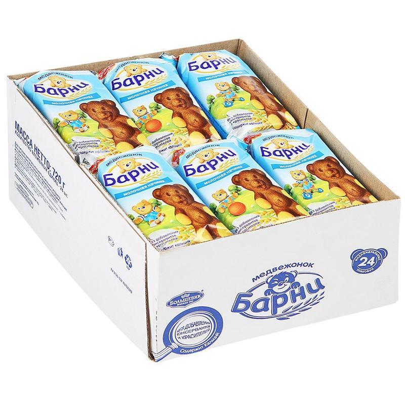 Пирожное бисквитное «Медвежонок Барни» с молочной начинкой 30 г (24 штуки в упаковке) — это одно из самых любимых детьми лакомств, которым с радостью насладятся и взрослые сладкоежки. Мягкий бисквит в форме игрушечного медвежонка с нежной и вкусной молочной начинкой внутри, никого не сможет оставить равнодушным.