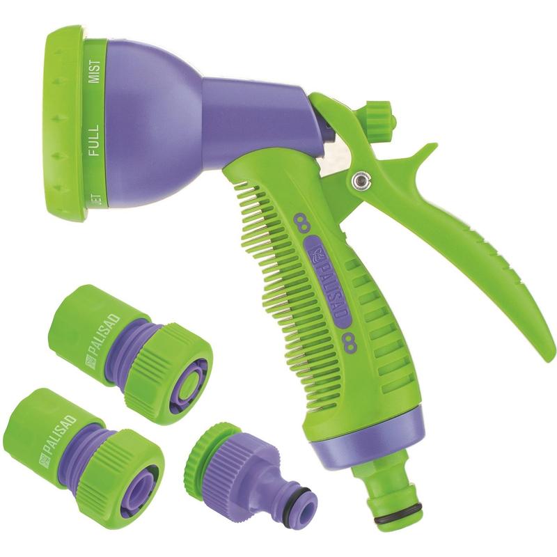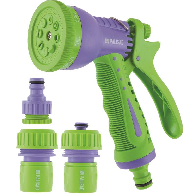 Набор для подключения шланга диаметром ¾ дюйма Palisad 65177 включает пистолет с 8 режимами полива, адаптер и 2 соединителя. Используется для орошения растений в саду и огороде. Шланг присоединяется к распылителю и отсоединяется от него за несколько секунд благодаря быстросъемному коннектору. Это позволяет подобрать оптимальную интенсивность распыления для каждого вида растений. Адаптер-переходник служит для подключения шланга к кранам диаметром ½ и ¾ дюйма. Все элементы комплекта совместимы с поливочными системами Palisad и Palisad Luxe.