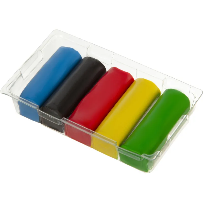 Каждый брусок весит 20 г, общий вес набора составляет 100 г. Упаковка — полиэтиленовый пакет размером 164×74×22 мм. Пластилин производится в Чехии.