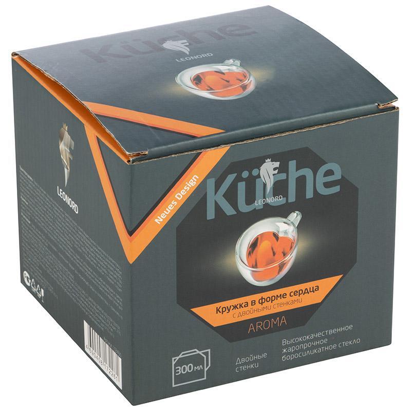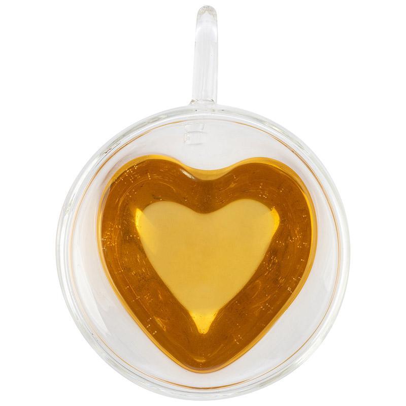 Кружка стеклянная в форме сердца с двойными стенками. Благодаря эстетичному дизайну украсит любой стол. Материал: боросиликатное стекло. Объем: 300 мл. Размер: диаметр — 14 см, высота — 10,5 см. Упаковка: цветная коробка.