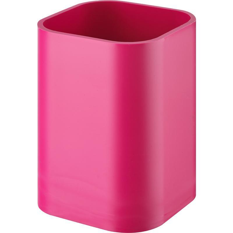 Подставка для канцелярских мелочей изготовлена из экологически чистого полистирола розового цвета. Используется для размещения письменных принадлежностей. Размер — 7×7x10 см.