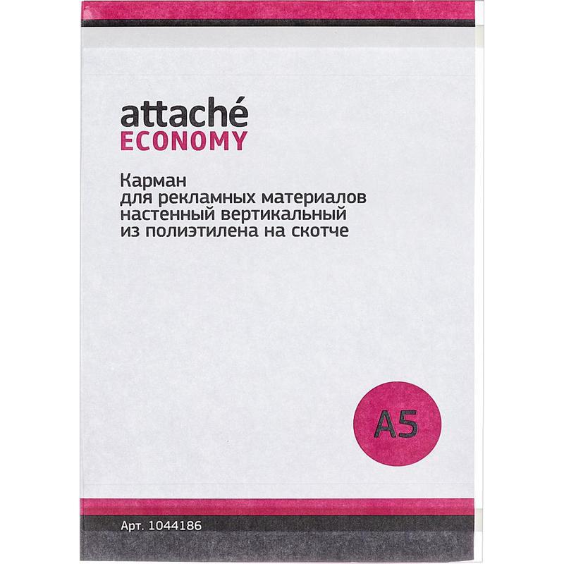 Держатель для информации Attache Economy формата А5. Вертикальный карман со вспененным скотчем, с двумя загибами. Фиксируется на двух полосках скотча, размещенных на тыльной стороне кармана. Материал — полиэтилен ( 0.3 мм).