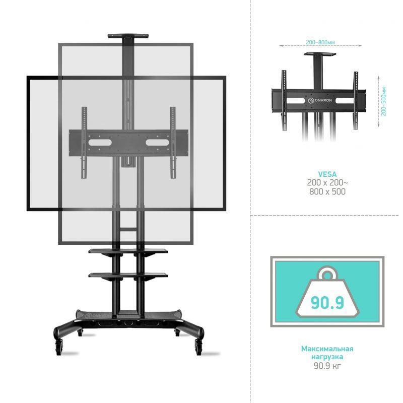 Мобильная стойка Onkron TS1881 подойдёт для ЖК, Плазменных и LED телевизоров и панелей с диагональю от 55 до 80 дюймов и впишется в любой интерьер.