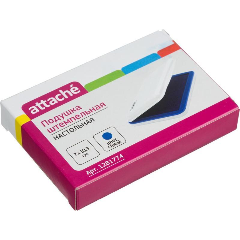 Подушка штемпельная Attache синяя. Предназначена для работы с ручными печатями и штампами и изготовленными из резины и полимеров. Корпус пластиковый без замка. Заправлена краской на водной основе. Размер подушки — 55x90 мм. Внешний размер изделия: 70x103 мм.