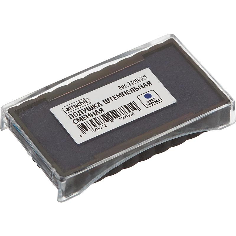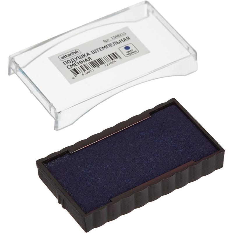 Сменная штемпельная подушка Attache с краской синего цвета на водной основе с добавлением глицерина. В зависимости от поверхности и абсорбирующей способности материала позволяет получить в среднем 5000 четких оттисков. Не рекомендуется заправлять краской сменную подушку — плотный верхний слой не пропустит ее внутрь. Поставляется в пластиковом футляре. Подходит для штампа арт. 1348207.