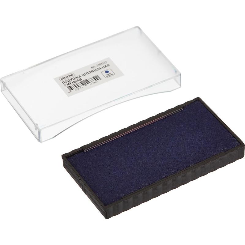 Сменная штемпельная подушка Attache с краской синего цвета на водной основе с добавлением глицерина. В зависимости от поверхности и абсорбирующей способности материала позволяет получить в среднем 5000 четких оттисков. Не рекомендуется заправлять краской — плотный верхний слой не пропустит ее внутрь. Поставляется в пластиковом футляре. Подходит для штампа арт. 1348208.