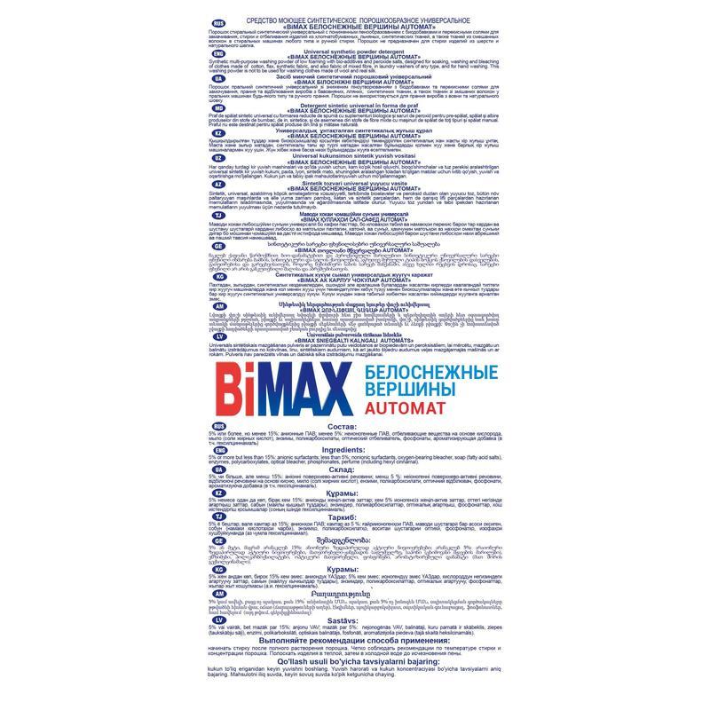 Порошок стиральный автомат BiMax Белоснежные вершины 3 кг.
