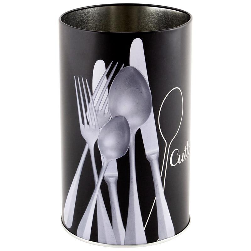 Подставка для столовых приборов металлическая, дизайн «Столовые приборы».Материал: жесть, толщина 0.24 мм. Размер изделия — 10,5×10,5×17 см. Упаковка: стикер + пакет.