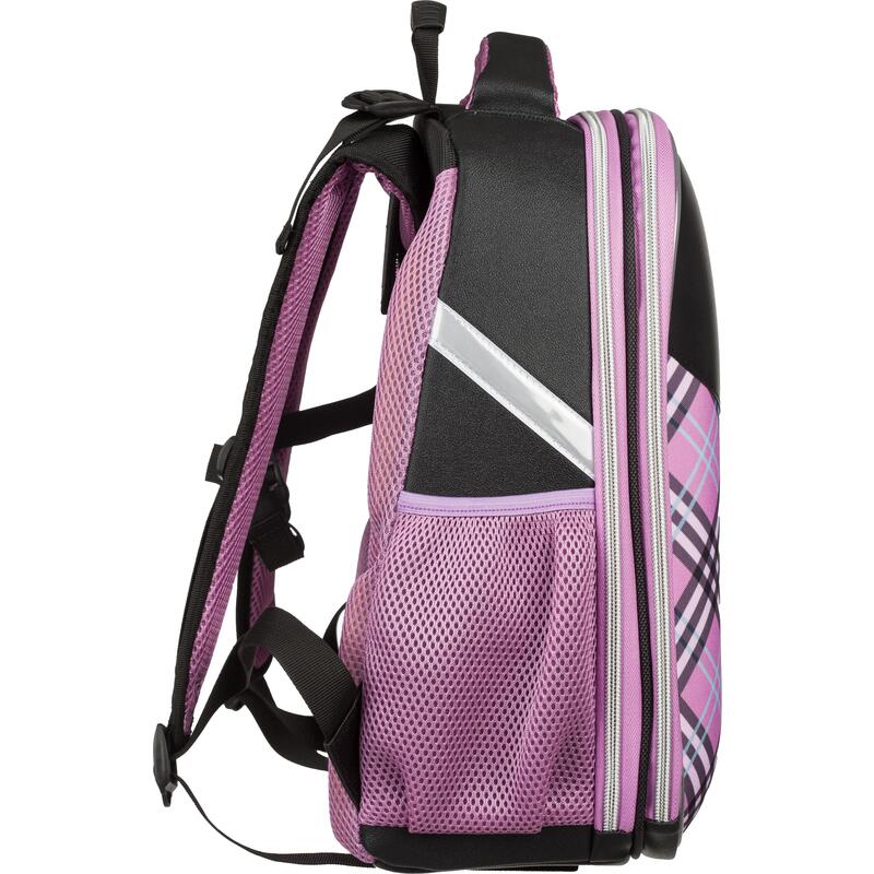 Ранец для девочки анатомический классической формы с откидной крышкой. Компактная обтекаемая форма. Ранец выполнен из экокожи и полиэстера. Жесткий каркас. Анатомическая спинка. Благодаря устойчивому дну и ножкам ребенку будет удобно находить нужные учебники и тетради. Боковые карманы с сеточкой подходят для переноски маленькой бутылочки с водой и прочих небольших аксессуаров. Широкие удобные лямки из воздухообменного сетчатого материала регулируются по длине и по спинке рюкзака — удобно подогнать под рост ребенка. Плотное дно удерживает форму. Для дополнительной безопасности ребенка в темное время суток светоотражатели на лямках и над боковыми карманами. Размер: 280×150×360 мм. Ранец упакован в плотный брендированный пакет с ручками и с замком Zip Lock, что позволяет удобно переносить ранец, хранить без повреждений.
