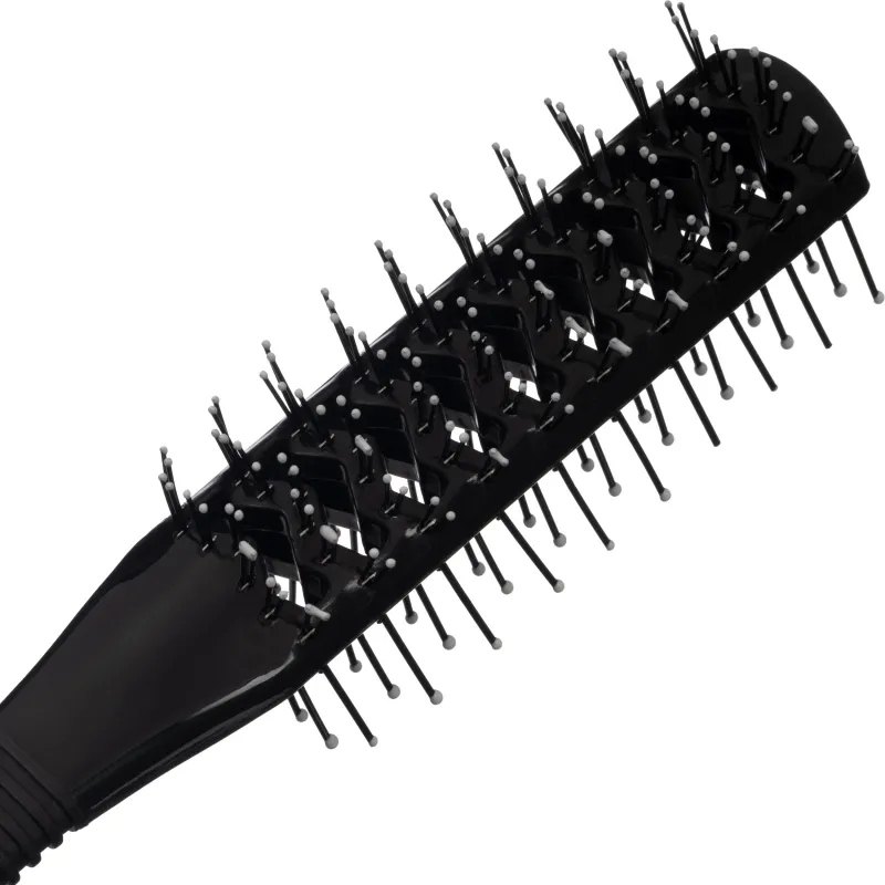 Широкое расположение мягких, закруглённых щетинок создаёт идеальные условия для бережного расчёсывания. Они проникают в волосы, охватывая более обширные участки, что позволяет расчёсывать даже влажные пряди без риска их повреждения или вытягивания. Это делает её идеальным выбором для использования после мытья, на влажных волосах, когда они наиболее уязвимы.