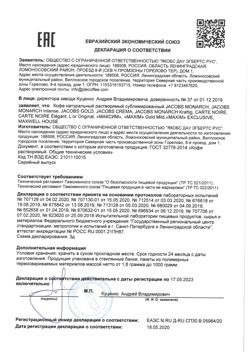 Кофе растворимый сублимированный Jacobs Monarch с ярким вкусом и насыщенным ароматом. Гранулы созданы из обжаренных и мелко перемолотых зерен. Кофе обеспечивает заряд бодрости, так как содержит антиоксиданты. Рецепт приготовления этого напитка прост — достаточно положить в чашку одну чайную ложку и добавить горячую, но не кипящую воду. Растворимый кофе Jacobs Monarch поставляется в стеклянных банках, вес нетто — 190 г.Срок годности кофе: 24 месУсловия хранения: в сухом прохладном месте при температуре 20, при влажности воздуха не более 75%Производитель: Мон`дэлис Рус