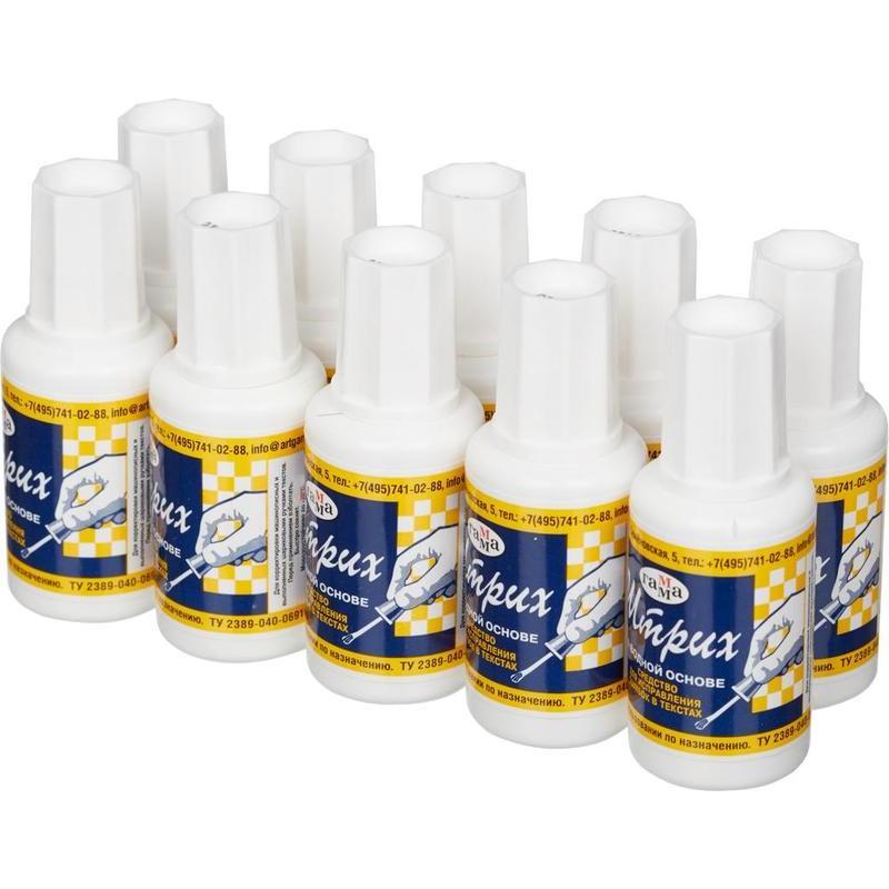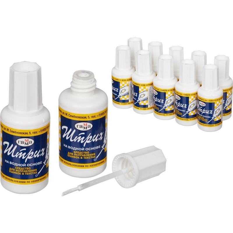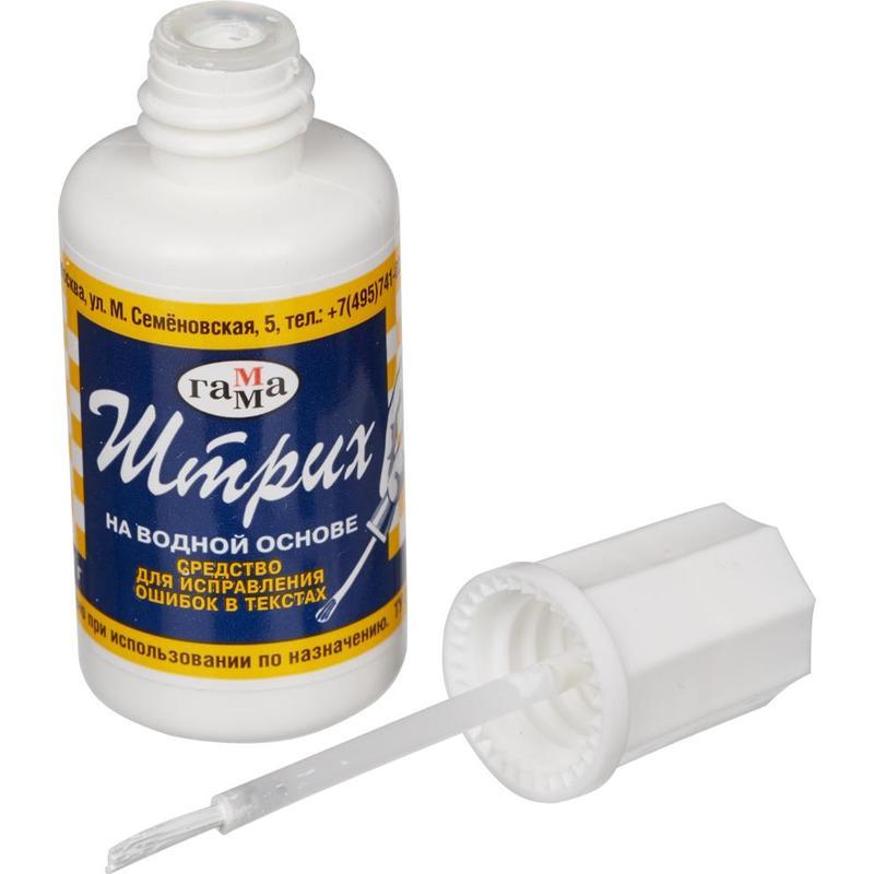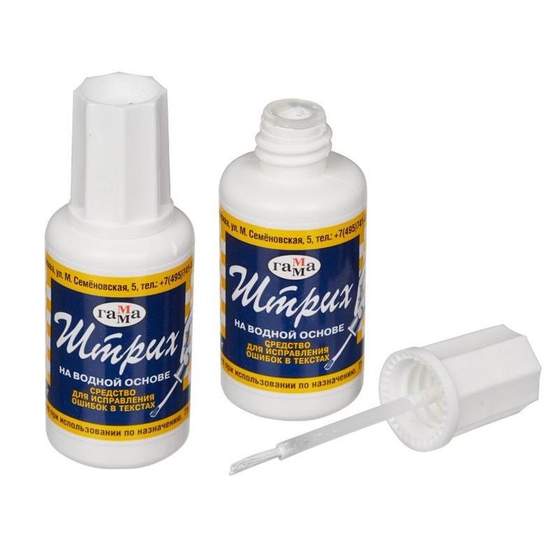 Корректирующая жидкость «Штрих» применяется для корректировки всех типов документов, включая бумагу для факсов. Ложится ровным гладким слоем, создает непрозрачное покрытие. Имеет водную (эмульсионную) основу. Вид кисточки — ворс. Объем флакона с корректирующей жидкостью составляет 20 мл. Вес - 27 г.
