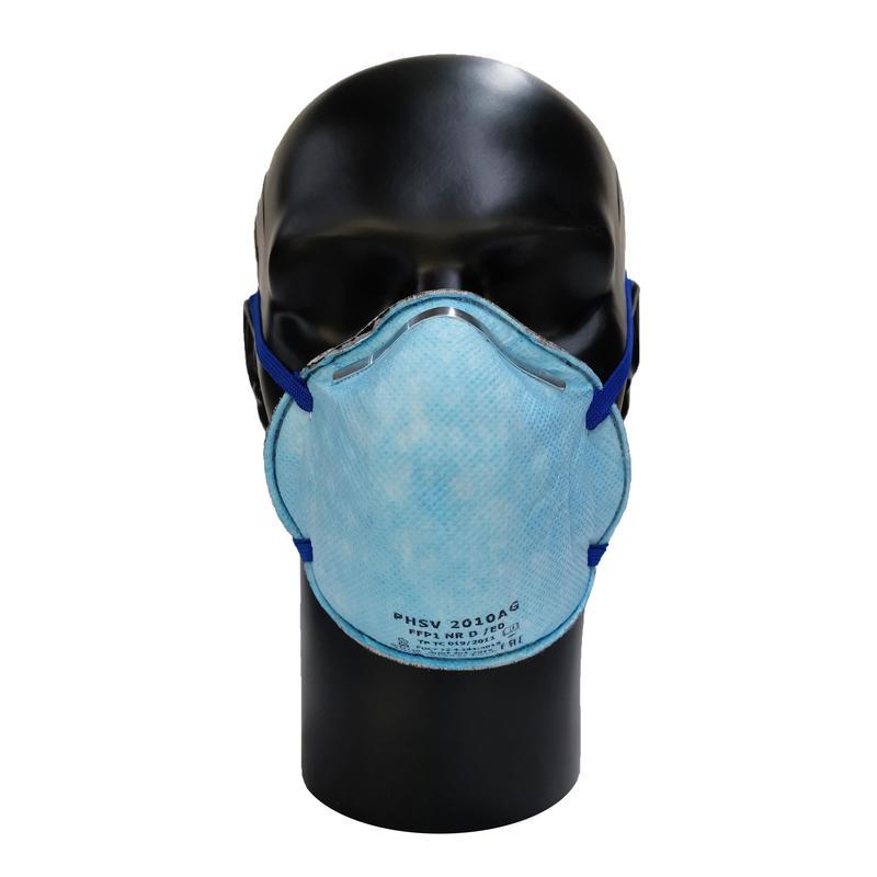 Фильтрующая полумаска PHSV FFP1 NR D/E0 2010AG, без клапана выдоха, класс фильтрующей эффективности FFP1 до 4 ПДК, чашеобразной формы. Защищает органы дыхания при работах в средне-запыленных зонах до 4 ПДК, а также в зонах с содержанием паров диоксида серы и паров других кислых газов.