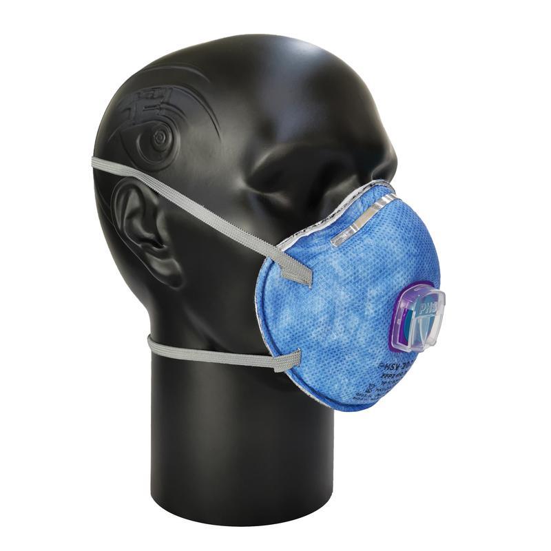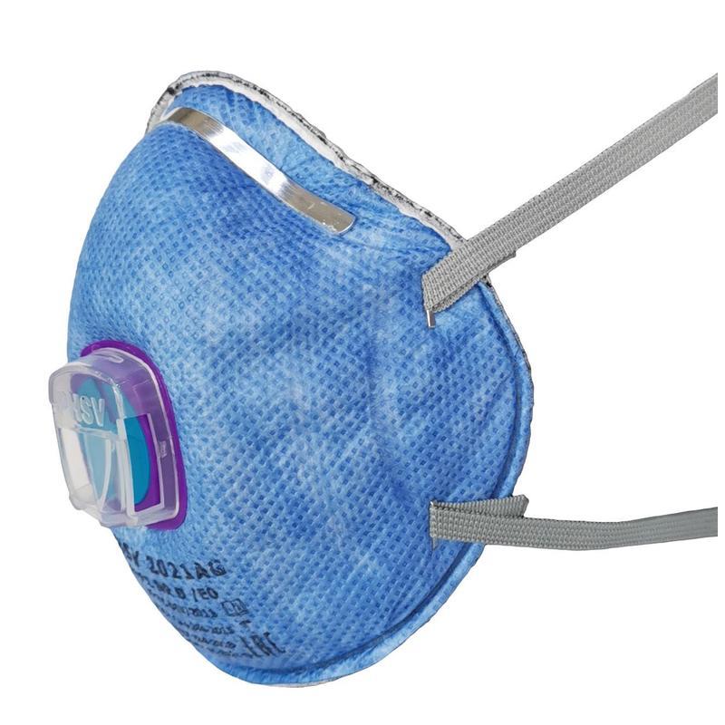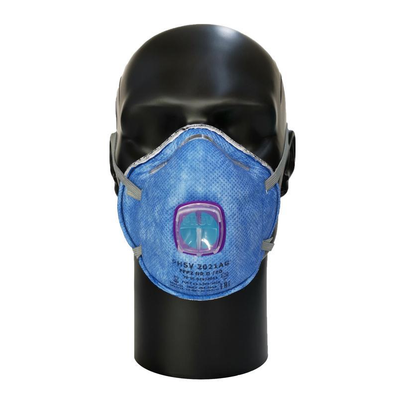 Фильтрующая полумаска PHSV FFP2 NR D/E0 2021AG, с клапаном выдоха, класс фильтрующей эффективности FFP2 до 12 ПДК, чашеобразной формы. Защищает органы дыхания при работах в помещениях с повышенной температурой воздуха, повышенной влажностью и высокой запыленностью до 12 ПДК, а также в среде с содержанием паров диоксида серы и паров других кислых газов.