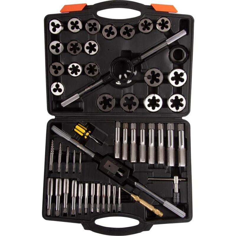 Набор резьбонарезного инструмента предназначен для нарезания метрической резьбы. Находит применение в промышленности, производстве, СТО и других. Инструменты набора выполнены из высококачественной быстрорежущей стали, благодаря чему отличаются надежностью и долговечностью. Набор поставляется в удобном кейсе для рационального хранения и транспортировки.
