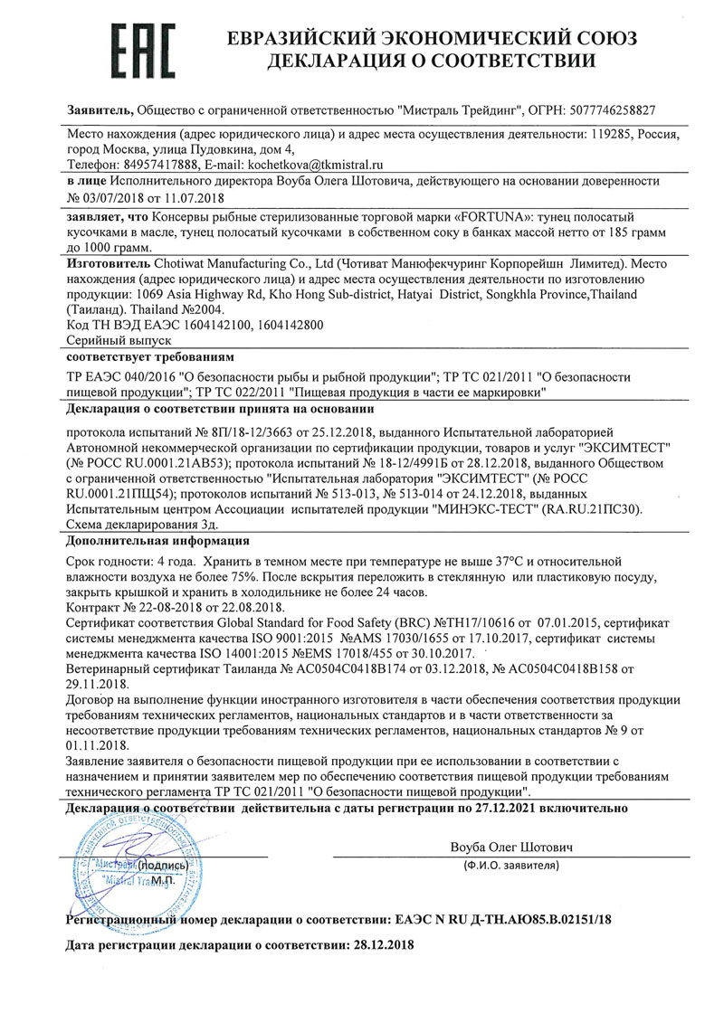 Тунец «Fortuna» рубленый в собственном соку 185 г.