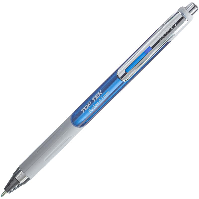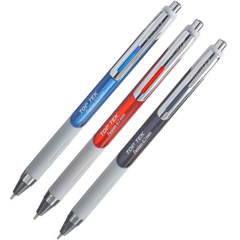 Автоматическая шариковая ручка Unimax Top Tek Fusion выполнена в инновационном прорезиненном корпусе серого цвета с яркими пластиковыми элементами. Ручка, соответствующая мировым тенденциям в области письма. Толщина линии письма: 0.5 мм. Диаметр шарика: 0.7 мм. Ручка, созданная по революционным технологиям с использованием материалов высшего качества, обеспечивает мягкое и качественное письмо за счет использования синих чернил особо низкой вязкости на масляной основе. Сочетание уникальных технологий производства чернил и пишущего узла позволяет писать на 20% дольше без пропусков и помарок при минимальном давлении на ручку. Ручка также предназначена для левшей. Внимание! Товар поставляется в нескольких вариантах цвета/дизайна (без возможности выбора).