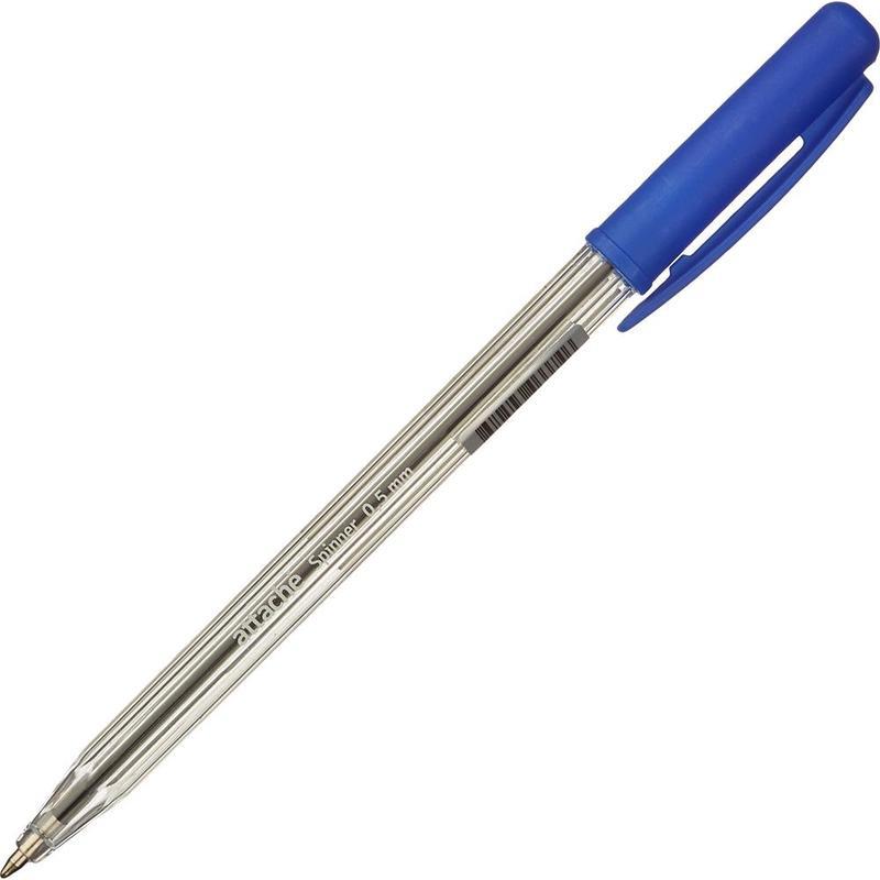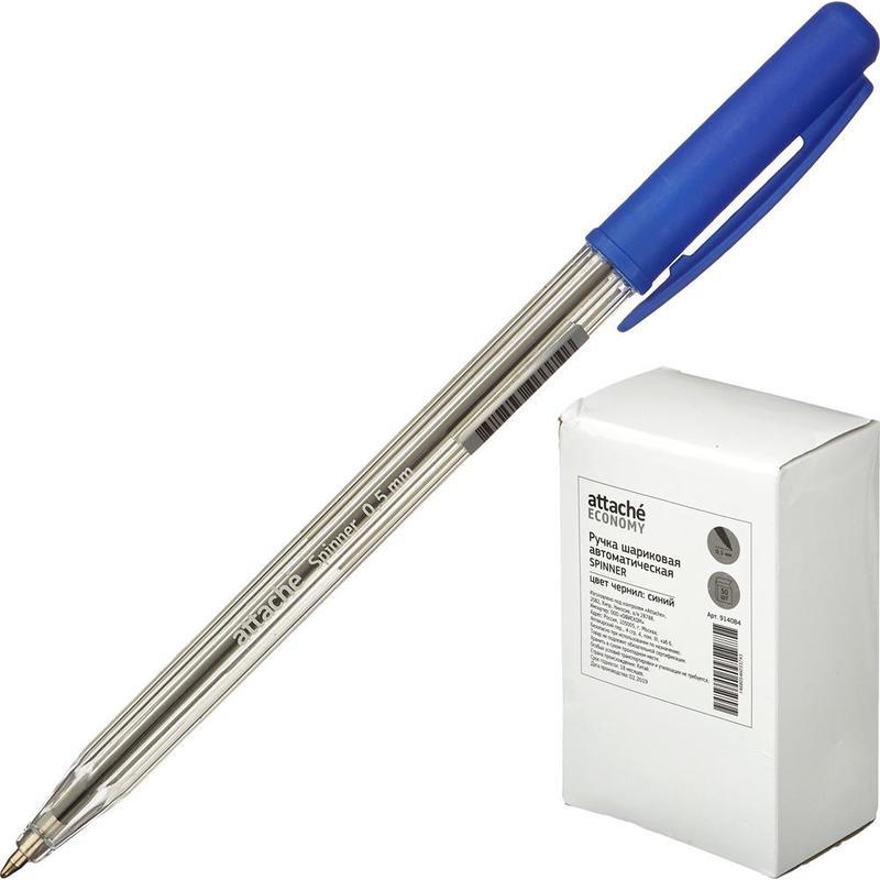Ручка шариковая Attache Economy Spinner выполнена из пластика. Это простая и удобная в обращении ручка. Для подачи стержня проверните вправо пластиковый колпачок. Ручка с диаметром шарика 0,7 мм обеспечит Вам мягкое и комфортное письмо толщиной до 0,5 мм. Ручка поставляется в прозрачном корпусе с синим колпачком. Цвет чернил — синий.