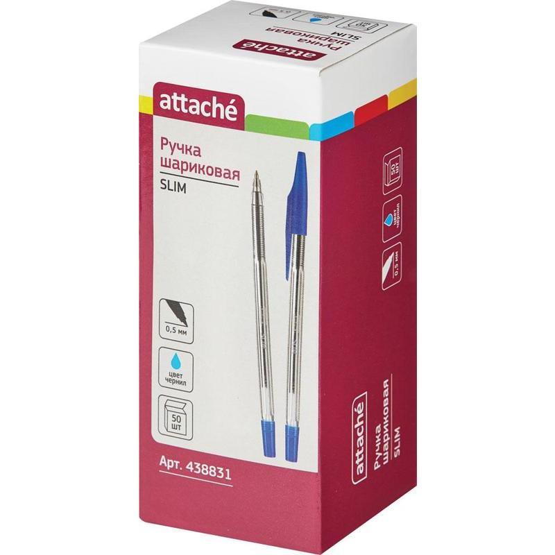 Шариковая ручка Attache Slim с толщиной линии письма 0,5мм.Ручка выполнена в пластиковом прозрачном корпусе и синими элементами.Обладает ребристой зоной захвата, снижающей скольжение.Колпачок вентилируемый.