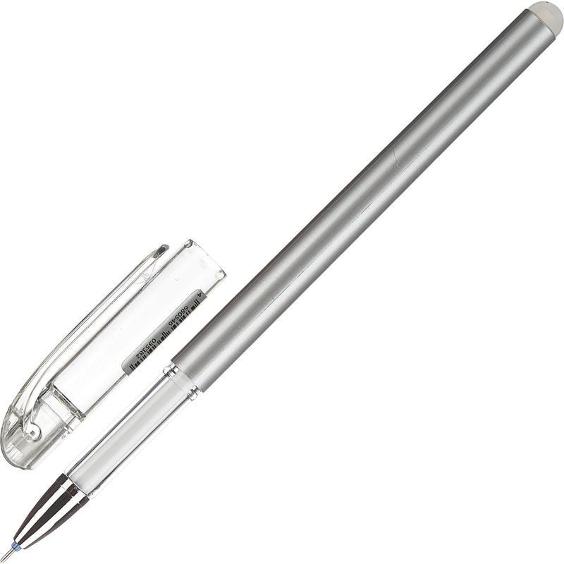 Ручка гелевая Attache со стираемыми чернилами синего цвета обладает игольчатым наконечником, обеспечивающим толщину линии письма 0,38 мм. Термочувствительные чернила становятся невидимыми при нагревании. Для удаления надписи необходимо потереть её специальным ластиком, встроенным в основание тыльной части ручки. При письме и стирании ручка не повреждает структуру бумаги, делая исправления незаметными. Ручка не рекомендована для использования в деловых документах. Диаметр шарика — 0,38 мм. Толщина линии письма — 0,38 мм. Длина ручки — 150 мм. Возможности смены стержня нет.