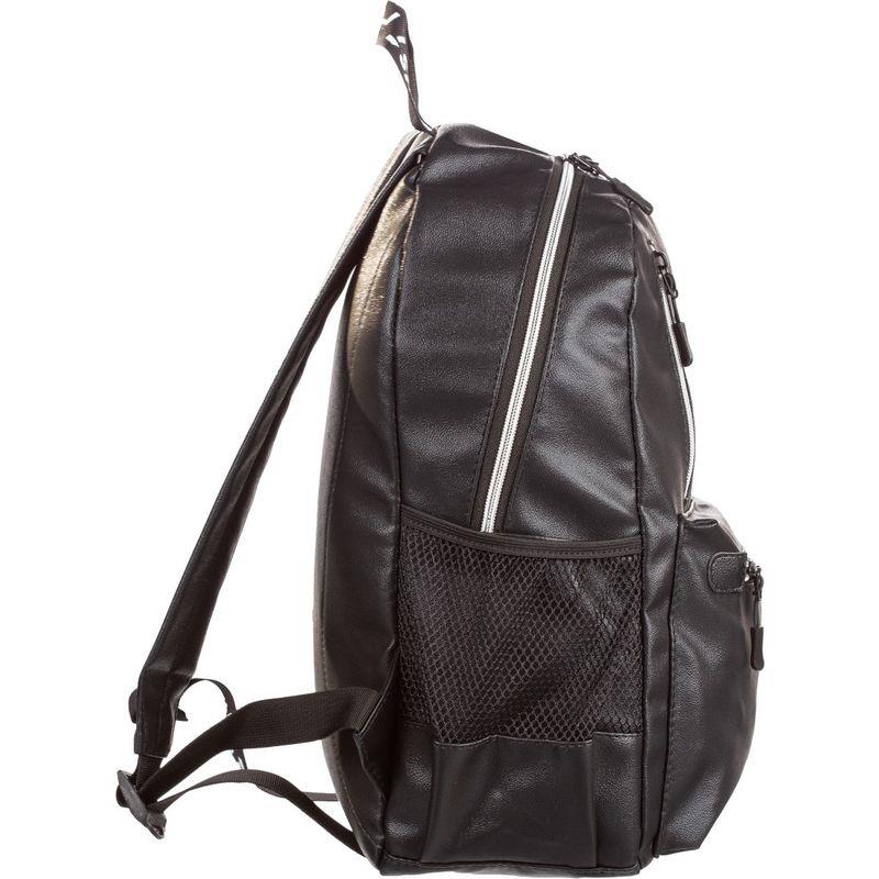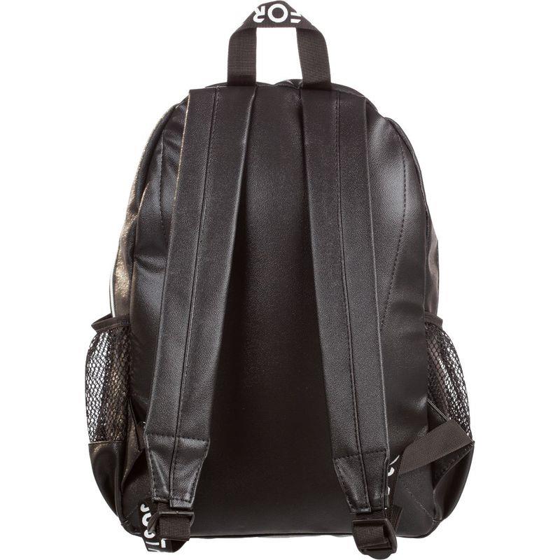 Рюкзак имеет одно основное отделение на молнии с открытым карманом внутри. На лицевой стороне расположен накладной карман на молнии и дополнительный вертикальный карман на молнии. Два боковых кармана с сеткой. Мягкая уплотненная спинка и задние лямки. Сверху ручка-петелька для ношения в руке. Размеры (ДхШхВ): 260x150x400 мм. Вес изделия — 800 г. Особенности: материал рюкзака — экокожа.