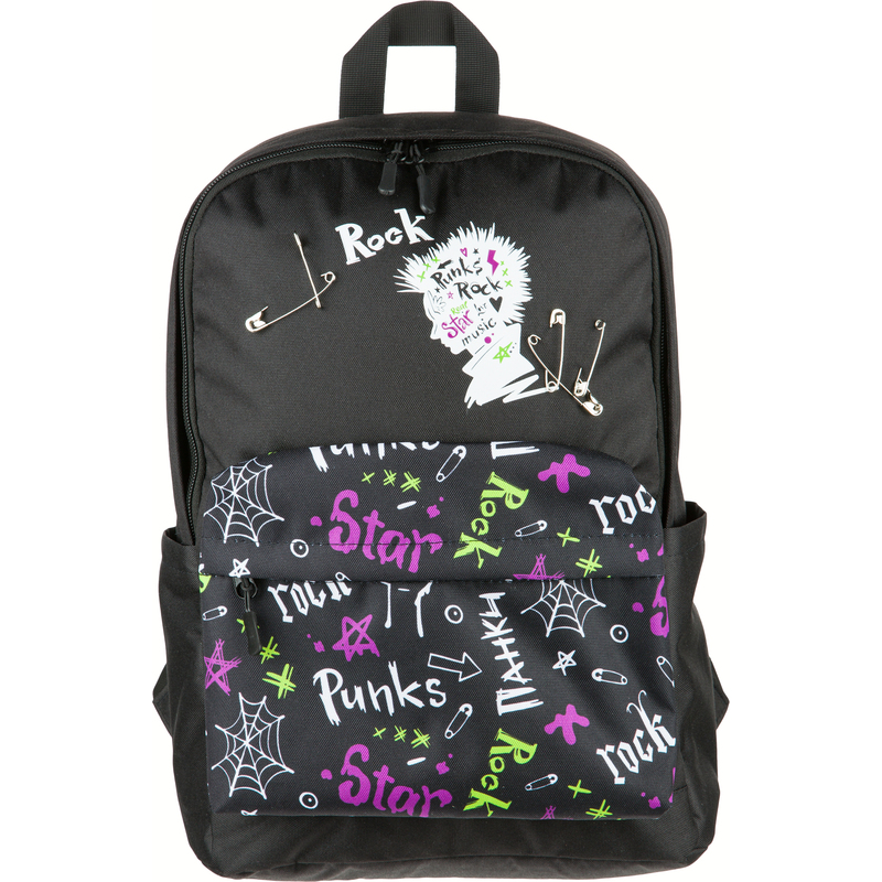 Рюкзак молодежный Комус Класс РОК черный имеет одно основное отделение на молнии. Сверху ручка-петелька для ношения в руке. Материал: полиэстер. Размер изделия — 260×150×400 мм. Вес изделия — 800 г.