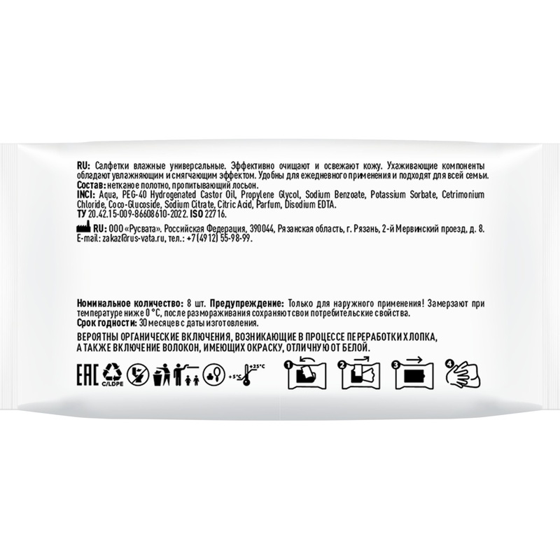 Универсальные влажные салфетки в миниупаковке. Изготовлены из нетканого материала с высоким содержанием хлопка, не содержат парабенов и спирта. Удобны для ежедневного применения и подходят для всей семьи.