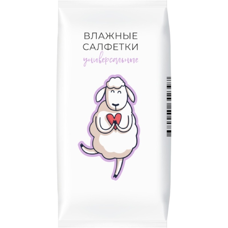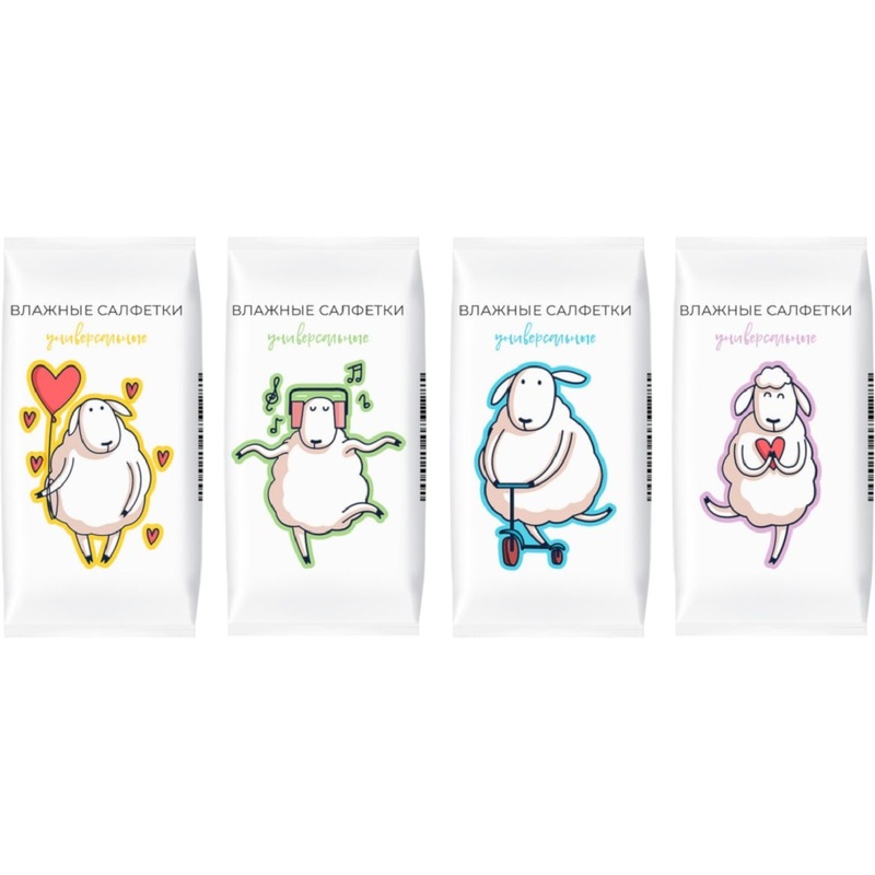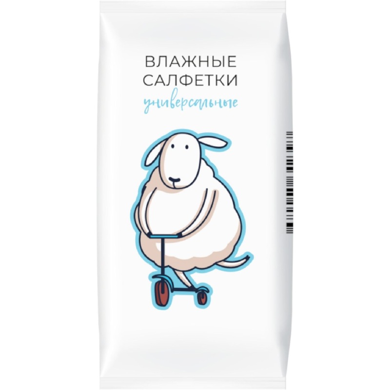 Салфетки влажные Овечки универсальные флоупак с жестким клапаном (8 листов в пачке).
