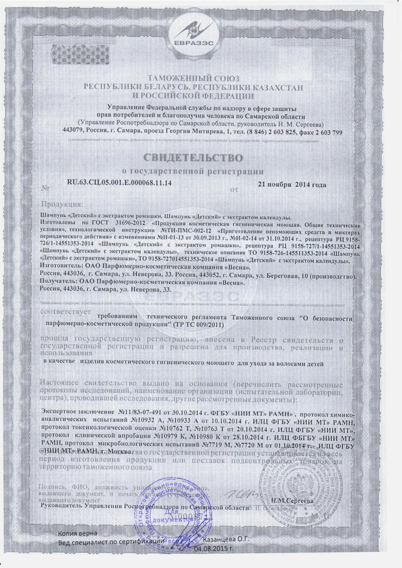 Шампунь специально разработан для ухода за нежными детскими волосами. Мягкие компоненты не сушат кожу головы, поэтому шампунь подходит для частого применения. Содержит экстракт календулы, который стимулирует кровообращение и способствует росту волос, насыщая кожу головы витаминами.