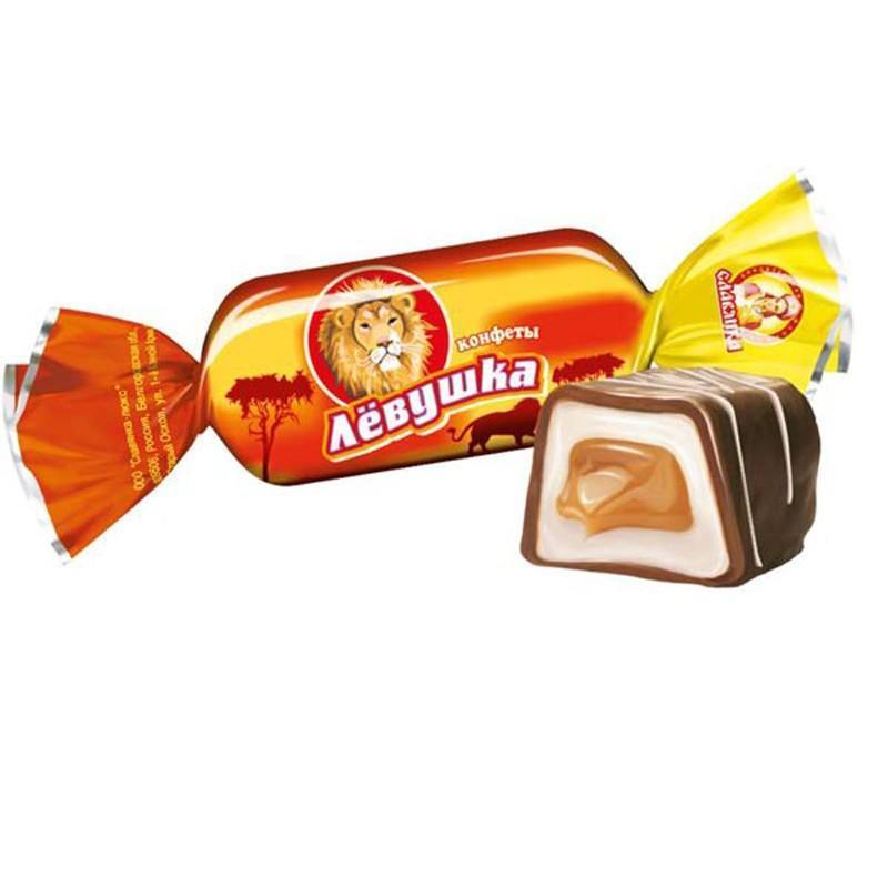 Конфеты «Левушка» Кондитерской фабрики«Славянка» —это сочетание двух начинок, нежного фруктового желе и сладкойкарамели. Сверху лакомство покрыто слоем молочной глазурии украшенотонкими полосками белого шоколада. Слои желе переплетаются междусобой, создавая мягкий, приятный вкус, с легкой кислинкой. Конфетычудесно сочетаются с чашкой бодрящего утреннего кофе. Поднимайтесебенастроение с утра, наслаждаясь сладким завтраком.Состав: патока, сахар, какао тертое, эквивалент масла какао (масларастительные,эмульгатор лецитин соевый, антиокислитель Е306, кислота лимонная),молоко цельное сгущенное с сахаром (сахара: сахароза, лактоза,молокоцельное), агент желирующий пектин, заменитель масла какао (масларастительные, эмульгаторы: Е492, лецитин соевый, антиокислитель Е306),сыворотка молочная сухая, красители (диоксид титана, сахарный колер),эмульгаторы (лецитин соевый, E476), жир растительный (масларастительные, антиокислитель Е306), ароматизаторы,какао-порошок,соль, агент влагоудерживающий Е420.Может содержать следы муки пшеничной, яичного белка, фундука.Пищевая ценность в 100 г продукта: белки — 0,9г,жиры — 7,3г, углеводы — 74,7г.Энергетическая ценность: 371 ккал.