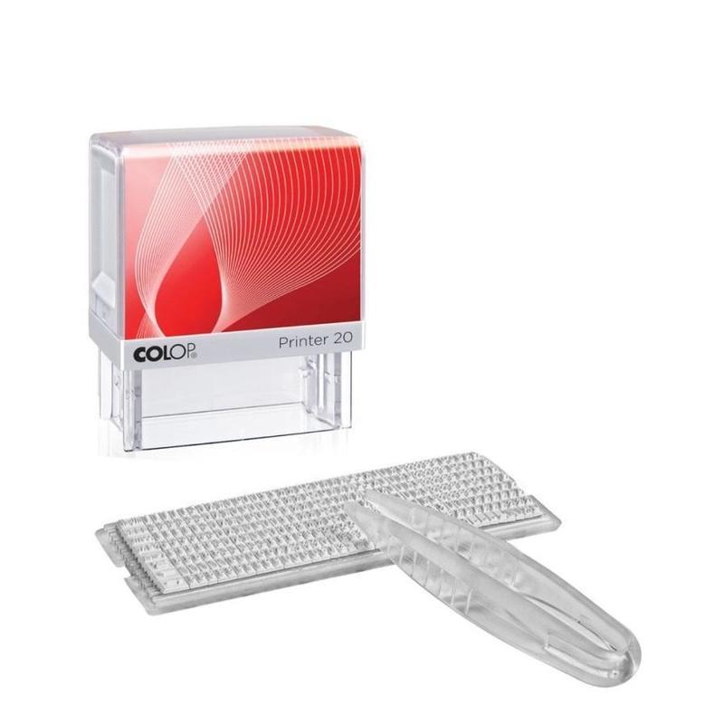 Штамп самонаборный Colop Printer 20-Set используется для самостоятельного создания и оперативного изменения текста оттиска. Компактный и надежный пластиковый корпус с автоматическим окрашиванием. На корпусе расположено большое информационное окно для корпоративной или личной персонализации. Прозрачное основание штампа позволяет точно размещать оттиски на документах. Штемпельная подушка легко заменяется. Оптимальный набор букв, цифр и символов с креплением на одной ножке, экспресс-набор текста. Размер поля — 38×14 мм, 4 строки. Максимальное количество знаков в каждой строке — 25 основным шрифтом или 17 большим шрифтом.Комплектация: штамп с рифленой пластиной для набора, одна касса букв Type Set A, синяя сменная штемпельная подушка E/20, пинцет.